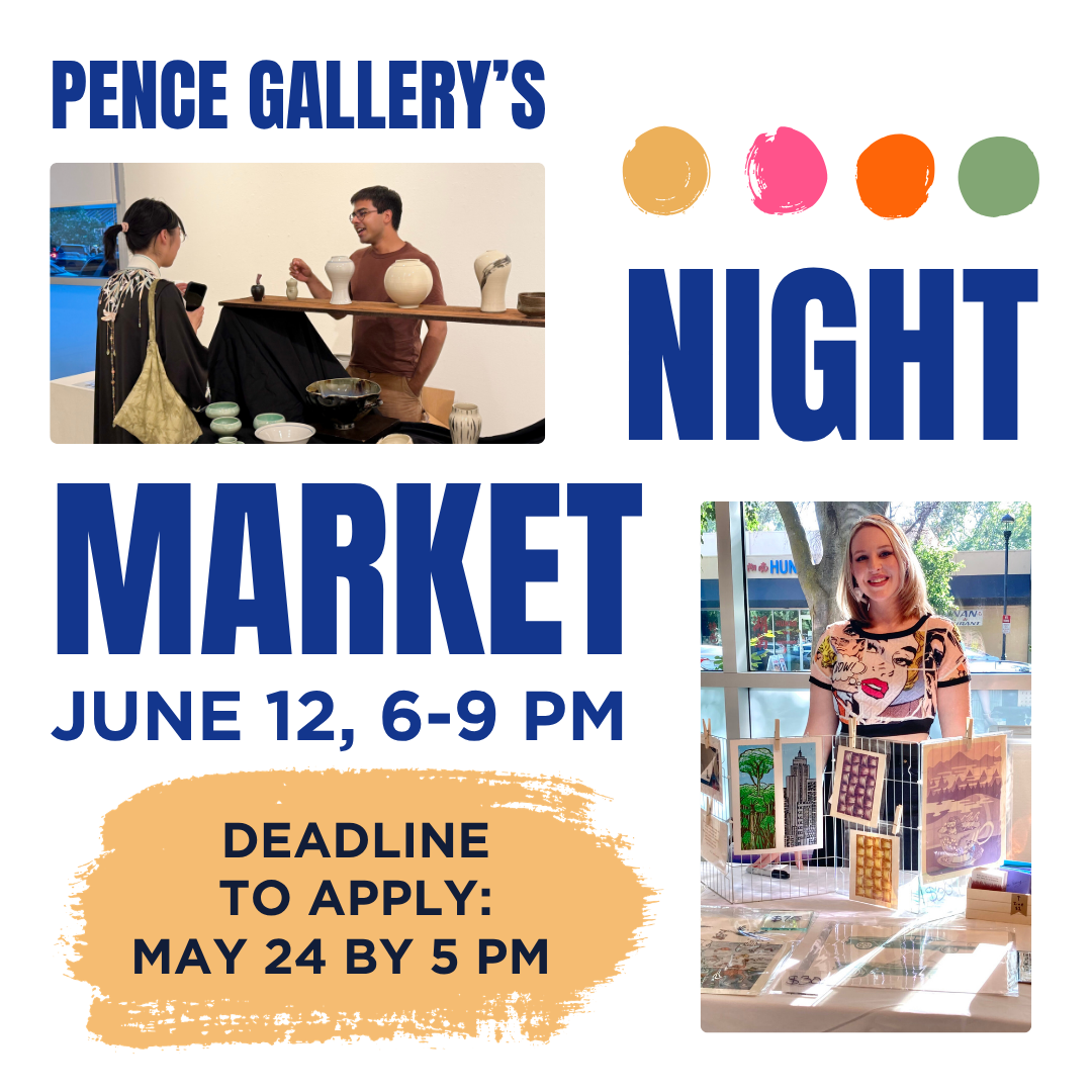 Our Night Market is back on June 12, 6-9 PM! The Pence’s Night Market is a pop-up market during the 2nd Friday ArtAbout that invites young visual artists, ages 16-25, to display and sell their work inside the gallery, ranging from prints and paintings, to ceramics and jewelry. It’s free to apply, and applications are due on May 24 by 5 PM.